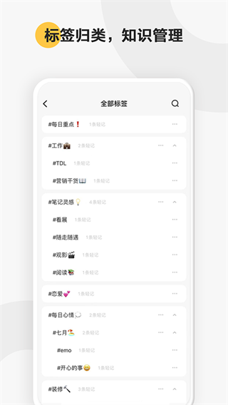 支持多级标签体系,你可以对内容进行清晰归类,搭建更立体的知识体系;不仅如此,多级标签更能让您的轻记检索更加便利和高效。