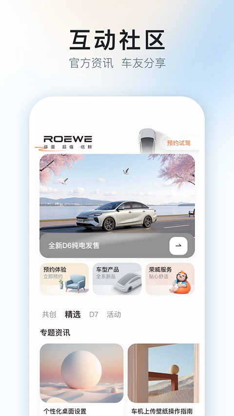 【资讯】 汇集最新品牌资讯,热销车型专题讯息。 【社区】 发布车友体验感受,分享精彩用车生活。 【产品】 了解最新车型产品,一站式个性化购车。 【商城】 精选海量好物商品,选购车辆精品周边。 【我的】 查看管理您的订单,解锁多种会员权益。上汽荣威app怎么绑定爱车?