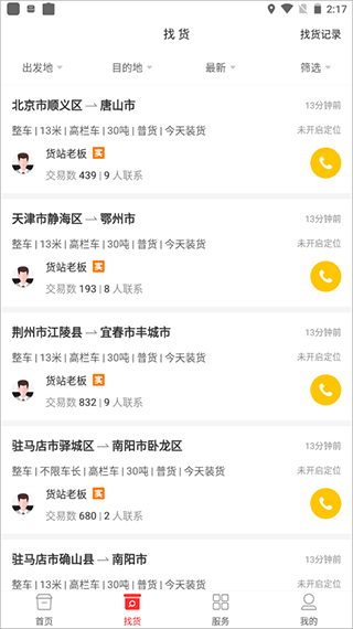 3、司机用户可以根据所需条件筛选货源信息,找到适合自己的货运订单。