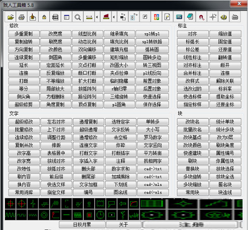 贱人工具箱官方版是autocad平台下一款非常优秀的cad插件,能够提供多种快速绘制CAD图形的工具。贱人工具箱能够完美兼容auotocad的所有版本。贱人工具箱拥有着近百种修改、标注、文字、块等功能的修改与绘制,例如修改功能,在可以用户可以进行多重复制、改宽度、继承填充、复制旋转等功能,同时标注功能可以进行对齐、缩放值、标弧长等操作的快速进行,再者贱人工具箱还能对文字(所有的文字处理都将是针对单行文字,多行文字无效)进行超级修改、左右对齐等等。总之,用户有了贱人工具箱,cad绘制不再是难题,傻瓜式的操作,让用户即使没有熟练的cad操作经验也能快速进行cad图像的绘制。一键式绘制,让用户从此摆脱了鼠标的长时间操作,只需一键就能快速进行绘制,欢迎有需要的朋友免费下载使用!。