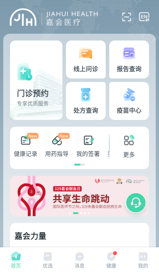【门诊预约】为用户提供线上门急诊预约服务,用户可根据自己的预约需求,进行医生预约,改期和取消操作; 【报告】待报告出结果后,用户可以在嘉会医疗APP进行线上报告查阅; 【就诊指引】:为用户提供就诊指引,卡片式任务,流程清晰,操作便捷; 【商城】在“首页”-“嘉会优选”提供有赞商品接入以及资产打通服务,通过 “限时优惠”等专栏,快速便捷帮助用户定位所需的商品; 【发现】为用户提供视频内容、健康知识、优惠信息、会员权益、平台活动信息,同时用户可以对各类优惠产品服务和内容进行分享传播。应用功能