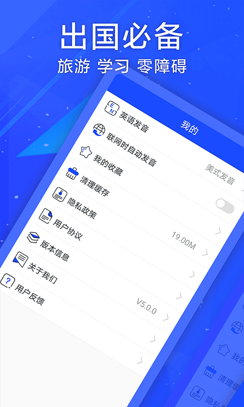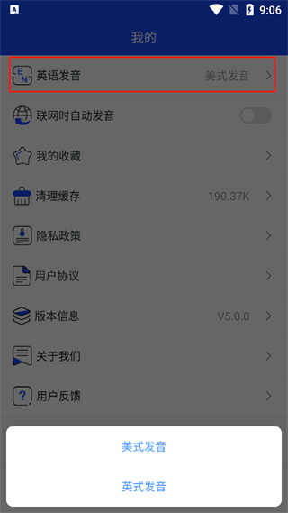 6、另外,点击我的,用户还可以根据需求切换中式发音和美式发音;