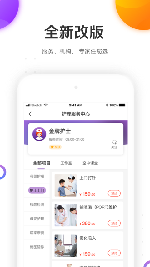 【护士上门】 上门打针,静脉采血,留置胃管,压疮护理,留置导尿,造口护理,PICC护理,灌肠护理,伤口换药,压疮护理及指导,外科伤口拆线,鼻饲护理,物理降温,输液港维护,血糖监测,膀胱冲洗,口腔护理,雾化护理,安全护理,造口护理,腹透管维护等。 【母婴护理】 通乳/开奶/回奶/排残奶,产妇产褥期护理,新生儿疾病筛查标本采集,新生儿居家护理及指导宣教,新生儿听力测试,满月汗蒸等。 【儿科护理】 少儿上门打针,小儿保健调理,小儿积食厌食调理,肛周护理等。 【中医理疗】 穴位贴敷,埋针治疗,艾箱灸,艾条灸,热敏灸,隔物灸,平衡火罐,拔火罐,火龙罐,刮痧,耳穴压豆,耳部按摩等。 【推拿按摩】 全身推拿,落枕调理,肩周炎调理,剪颈腰调理+头疗,中医按摩+拔罐,头部按摩+刮痧/走罐等。 【就医陪诊】 产科陪诊,体检陪诊,普通陪诊,尊享陪诊。 【居家康复】 压力性损伤能力评估与指导,疾病康复指导,骨科术后居家医学康复,脑卒中术后居家医学康复,关节置换术后居家医学康复,帕金森术后居家医学康复,老年认知症居家医学康复,腰间盘突出居家医学康复等。 【特色服务】 家庭护士,尊享照护服务,居家安宁疗护,关爱父母体检套餐,商务基础体检套餐等。推荐理由