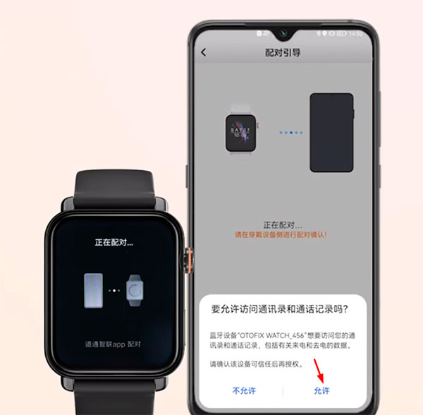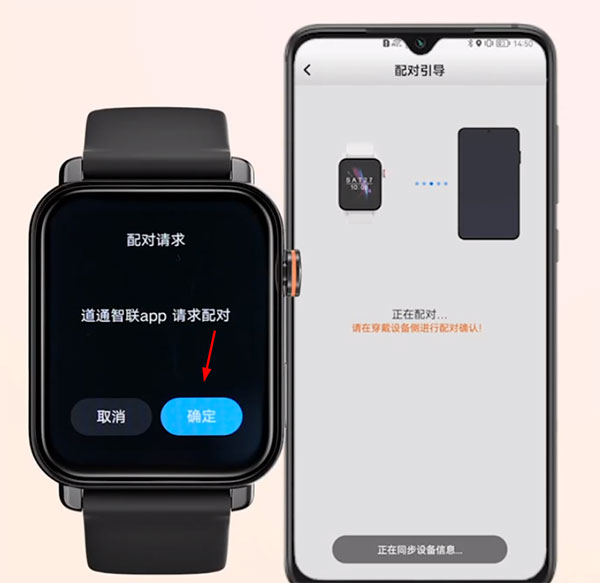 5、手表上会收到app配对请求,点击确定。