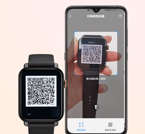 3、点击扫码添加,打开手表二维码,扫一扫。