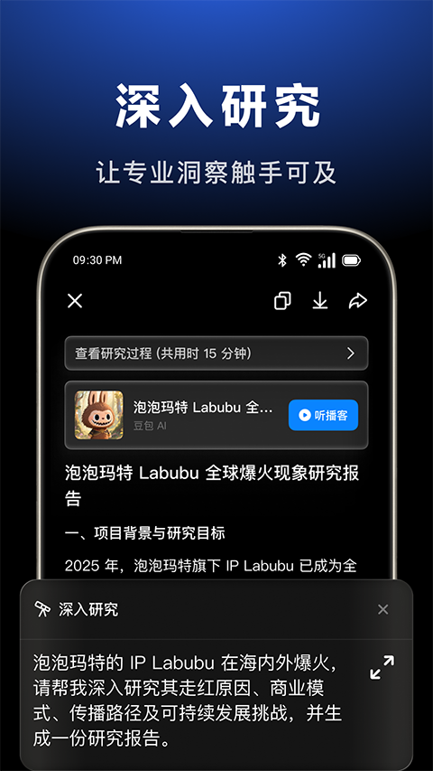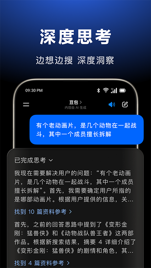 1、深度思考,逻辑缜密。 2、回答细致全面,可以边想边搜。 3、精准的拍照识图功能,实用又好玩。 4、图片编辑功能智能、有创意。 5、准确的语音输入,自然的语音输出。 6、多端实时同步对话内容。豆包ai官方版怎么生成ppt