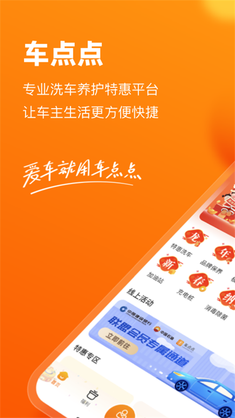 【特惠洗车 注册有礼】 车点点洗车神器---实惠的洗车价格,合作网点覆盖全国所有省份(除港澳台),洗车券全城通用,从标准洗车到深度精洗,为车主提供全方位的洗车服务,还有惊喜红包送送送。 【洗车年卡 省钱省心】 一次购买即可享受每月1次的标准洗车服务,优惠多多,全城门店通用,邀请好友还有惊喜福利。车点点洗车年卡,放心、省钱、方便! 【车务管家 智能专属】 车点点为您提供智能车务管家,做您贴心的车务小助手,24小时在线,全方位解答您的养车用车问题,还有驾照及车辆年检、车险到期提醒等专属服务。 【正品保养 美容维修】 厂商直供机油及正品配件,优惠的服务价格,精心筛选的优质社会化汽服门店,为您提供一站式汽车服务。 大保小保、美容打蜡、贴膜镀晶、油漆修复、车辆维修,省钱又省心。 【道路救援 极速必达】 全天候提供搭电、换胎、拖车等道路救援服务,极速必达,平均20分钟到达现场。 透明的救援价格,还有客服协助帮您处理事故现场突发状况,让您安心行遍天下。 【车务代办 专业高效】 提供车辆年检、送修等车务代办服务。一键下单,快速响应,还可上门取送车,专业高效。 【加油充电 周边查询】 支持全国中石油、中石化加油卡在线充值,官网直充,快速到账。 支持附近加油站、充电桩、停车场、检测站等信息查询,方便省心。 【点点优选 人车生活】 点点优选,打造人·车·生活优质内容社区,让您随时掌握养车用车小知识、行业资讯、车主生活日常,您也可以向广大车友们分享您的用车心得、趣闻轶事。 人人为我,我为人人,现在就加入车点点吧!常见问题