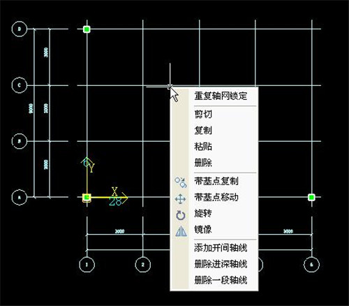 在鼠标点击所进深(开间)方向增加一条轴线,(开间或进深,软件会自动识别)软件自动增加分轴号标注