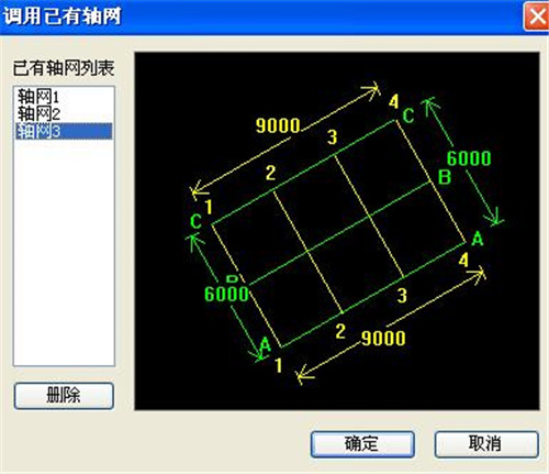 【调用已有轴网】:左键点击,如图所示,可以调用以前的轴网并进行编辑,如图