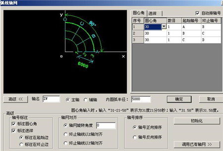 二、【弧形轴网】