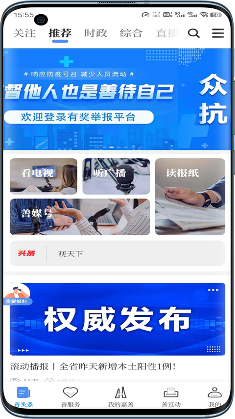 in嘉善app,一般又称in嘉善2.0app。这是由嘉善县传媒中心专为嘉善市民全新打造的生活服务类APP。该软件拥有资讯、政情、镇街动态、专题、爆料、互助、直播、点播等多个板块,涵盖了居民朋友日常生活的方方面面,立足于本土化特色服务,为群众提供及时有效的资讯和服务。如果您有任何确切的消息来源,您还可以利用in嘉善app内的爆料功能,为嘉善广播电视台提供第一手的新闻资讯爆料,这不仅可以让身边的朋友们得到第一时间的确切消息,而且还有可能收到电视台官方发来的表扬或者嘉奖。此外,in嘉善app内还有不定时的福利活动用以回馈广大用户朋友,例如幸运大转盘或者快乐大抽奖,奖品有大家喜闻乐见的手机话费充值卡、子凌滩黄酒、手机自拍杆、家纺用品、吹风机、移动电源、小米手环等多重豪礼,心动不如行动,赶紧拿起手机下载体验吧!