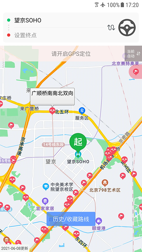 1、打开软件,可以看到北京各条街道的摄像头位置