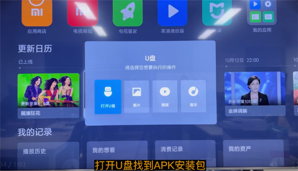 2、在安卓系统的电视上插入此U盘。