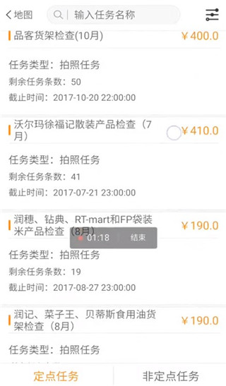 1、如果已经关注了一些门店,那么这些门店有新任务时会收到提醒; 2、做完任务之后会有积分奖励,1元对应1个积分,积分怎么用,还没找到地方 3、积分好像和等级没有关系,和等级有关的叫信用积分 4、信用积分累计的比较快,只要正常抢任务、完成任务,信用积分蹭蹭蹭地上涨 5、信用积分和用户星级是联系在一起的,我能看到还需5分即可升到四星用户 6、等级和可以抢的任务数量有关系,我原来只能抢10个任务,现在好像能抢15个 7、有时候能一键抢全店,有时候不行,经过比较,应该是在已关注门店里面可以一键抢全店,正常进入的时候没有一键抢全店 8、拍照只要对焦清楚,很容易通过审核,没有想象中要求那么高 9、任务说明和特别提醒要仔细看,否则容易拍漏了,这个我是有惨痛经历的 10、门店路线只是一个大方向的参考,具体地点容易出现偏差