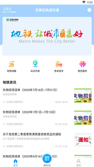 1、【码上出行】扫码乘车,出行无忧。 2、【线路图】玩转线路,换乘更便捷。 3、【站点信息】站内设施,扶梯厕所出入口,一目了然。 4、【首末班时刻表】就在首页,末班车顺利赶上。软件亮点