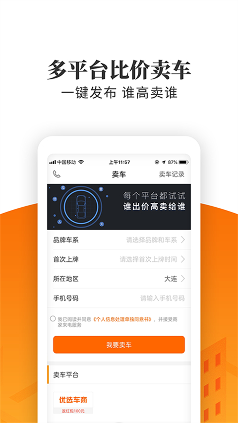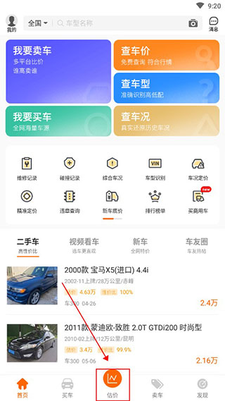 【淘车】 汇聚各家车源信息,浏览的同时还能比价,各家价格一手掌握。 【估价】 基于海量交易历史为您提供准确的车辆估价和目标车型市场分析功能,让您以“聪明”的方式完成交易。 【卖车返现】 精选优质卖车系统,把爱车卖出优价,卖车成功即可通过车三百二手车领取高至500元现金红包。 【卖车周期】 输入预售价计算售车周期和单笔利润平衡点,提高资金利用率。车300极速版app如何给车辆估价