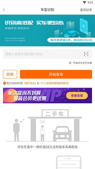 3、不清楚车辆信息也可直接选择扫描行驶证或输入车架号判断。