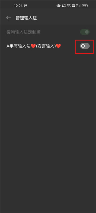 2、在管理输入法页面打开手写输入法,如图