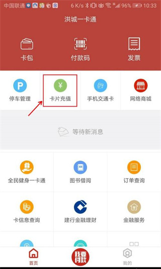 2、进入洪城一卡通,点击卡片充值。