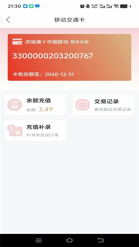 1、卡片充值 安卓手机:通过手机NFC或洪城一卡通蓝牙设备进行充值。 苹果手机:通过洪城一卡通蓝牙充值设备,进行充值。 2、电子发票 被绑定卡片的所有充值业务,可以开具发票。 3、卡片挂失、账户开通、账户查询 绑定本人持有的卡片,对所绑定卡片进行挂失,后台账户开通和查询。 4、订单查询 可以对在上进行的充值订单等交易,进行查询。 5、服务评价 可以查询已绑定卡片的7天交易明细,并对刷卡乘坐的公交服务进行评价打分。 6、我的客服 对一些卡片使用和使用中的问题进行解答。特色功能