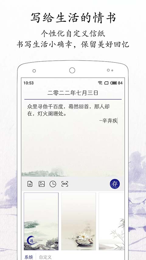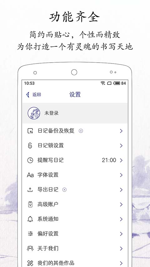 1、OCR:支持OCR识别,快速识别手写及纸质文字,记录快人一步 2、备份:日记可以云备份,换手机或者重新安装应用都不用担心数据丢失。 3、隐私:强大的密码保护以及贴心的伪密码功能,给你一个只属于你的个人空间。 4、导出:可随心所欲导出PDF格式的日记并发送至邮箱 5、提醒:可设置每日提醒写日记,帮助你养成写日记的好习惯 6、字体:提供多种字体,并且字体大小可随意更改,给你良好的写作体验。 7、信纸:超多好看信纸可使用,而且还可以自定义信纸哦 8、搜索:提供全文搜索,输入关键字就能够快速找到某个日记君啦 9、时间轴:朴素简洁的时间轴,查看不同时间的心路历程。 10、离线写作:随时随地离线写日记软件优势