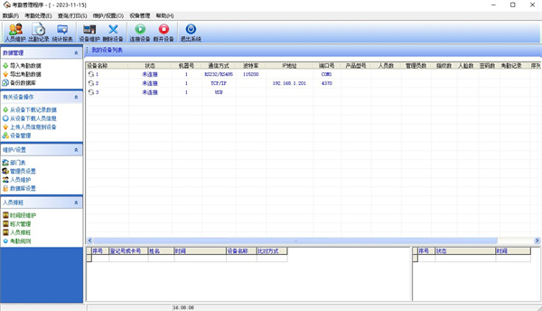 7、将设备上的考勤数据下载至软件中(连接设备-从设备下载记录数据)