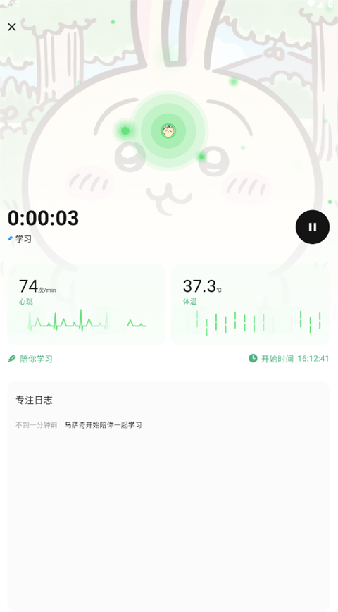 5、点击开始专注,虚拟人物就与陪伴着我们一起学习了。