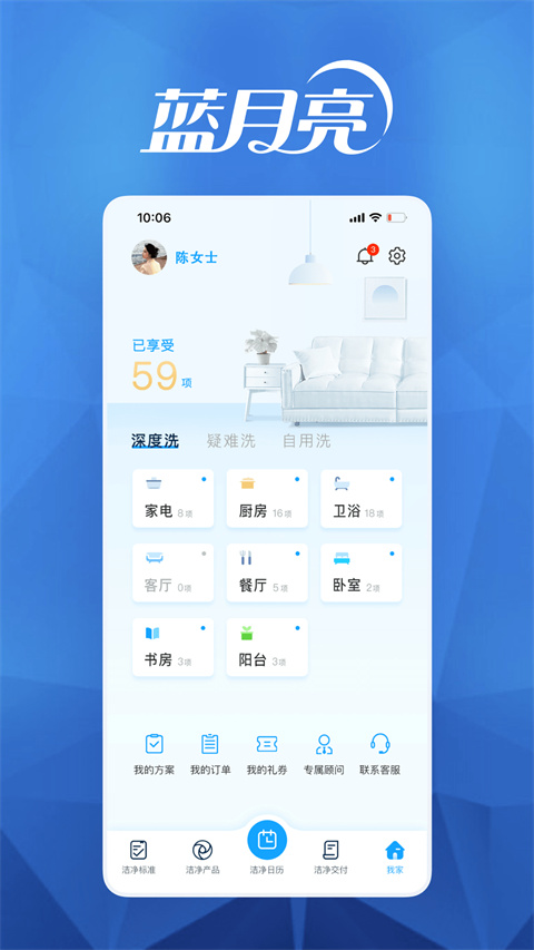 1、会员定制 这里提供蓝月亮全套家居清洁产品,根据不同家庭清洁问题悉心打造专属定制套餐,开启月亮之家,提升会员权益幸福感。 2、疑难服务 带你体验蓝月亮专业清洁服务,无论是厨具家电、还是洗衣难题,不用动手,我们帮你解决;深度清洁、彻底消毒,为你带来轻松、洁净新生活。 3、月亮社区 在社区里,可以畅所欲言,与各地达人一起探讨、交流洗衣方法、清洁难题、产品信息和生活经验;洁净升级的路上,你我一生相伴。更新日志