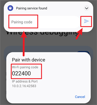 点按“无线调试”中的“使用配对码配对设备”