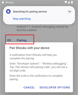 在 Shizuku 内开始配对