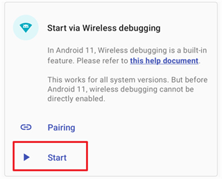 如果无法启动,尝试禁用并启用无线调试。