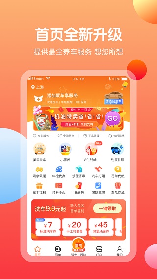1、下载安装app打开手机使用; 2、进入首页,点击保养、洗车,使您的汽车寿命更长; 3、点击年检代办,专业的工作人员让您的汽车办理效率更快; 4、点击接送街,让您随时出行拥有专车接送,让您的出行更加快捷。更新日志