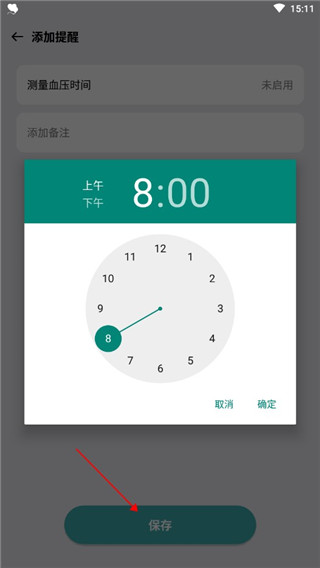 4、设置好测量血压的时间,添加信息备注一下,点击【保存】后就可以了。