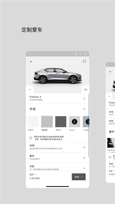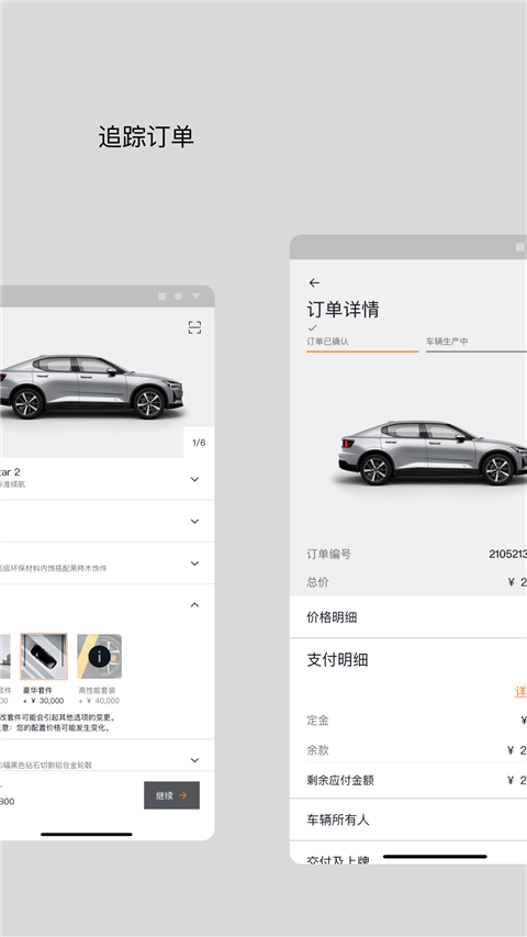 1、现在,和我们一起踏上向“星”之路。 更智能的“未来”由Polestar应用为您带来——极星汽车多视角预览尽在指尖,订单更新信息唾手可得。 通过Polestar应用,您可以预定属于您的极星汽车,从内到外定制化设计爱车配置,从定金支付到贷款申请一路畅通,开启便捷高效的线上购车体验。 2、订单查询服务 无论您结束了定金付款还是仅完成了定制化设计,都可以在Polestar 应用查询到每一次配置选择。已经支付完定金的订单,您可以了解到您的定金审核状态以及爱车生产状态;未完成支付的订单,您可以继续斟酌配置选择,完成后续的定金支付。 3、极星应用程序是您通往极星宇宙的门户。 无论您是想要配置和订购汽车、阅读最新消息,还是了解即将发生的事件,Polestar 应用程序都允许您完全控制并完全了解最新动态。更新日志