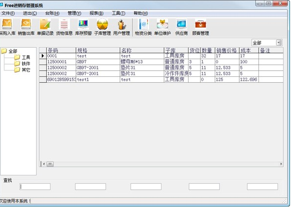 Free仓储管理系统软件是一款操作简单、功能强大、适用于企业的免费仓库管理软件。Free仓储管理系统支持Win8/8.1系统,具有多仓库管理、出入库、支持多用户、打印出入库单、打印仓卡、出入库流水账管理、成本核算、工号收发料对照、数据导出Excel、库存盘底表、库存台账、库存预警等功能,用户可以通过这款软件轻轻松松即可管理企业仓库。如果您是企业仓库管理的员工,那么该软件绝对非常适合您,它不仅能帮助用户管理所有仓库的信息和库存,还能够有效的记录所有资源的一切,比如说:入库、退回供应商、盘盈、出库、退回仓库、货物报废、盘亏、单据记录、出入库撤销等,是你提升工作效率的必备软件。有需要的朋友可以下载看看哦。