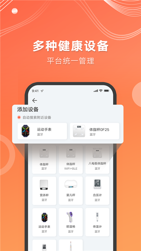 3、选择想要连接添加的智能设备,如运动手表、运动耳机、智能跳绳、体脂秤等等;