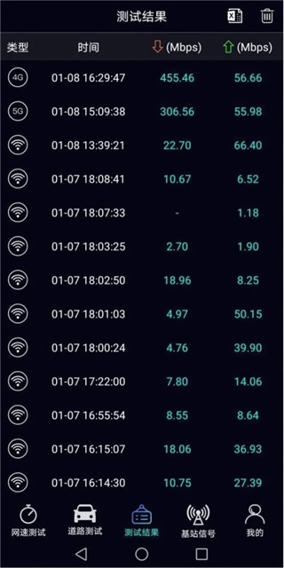 --网络测速 实时测速手机或固定宽带的网速,支持下载、上传、延迟、抖动等专业指标测量,轻轻一按30秒内就可以完成网络速度测试,同时支持多种测速协议,全国超过500+个测速节点。 --基站信号 非常专业的手机网络信号测试工具,无需ROOT就可以实时的监测自己手机的网络信号情况。 --道路测速 可以很方便的进行单个或多个业务测来评测网络性能,结合图形化同步展示效果可以直观的了解运营商的网络质量状况。 --视频测速 频播放体验主要与终端性能、网络传输能力及视频源等因素相关。通过评测可以直观地反映用户观看视频时主观感受的等级、视频源质量及传输损伤等因素对用户体验的影响。 --网页测速 网页深度测试,关注网页访问的真实体验,对网页响应时间、加载时延、加载速度等指标进行评测。评测结果是当前网络运营商及网站提供商的整体性能表现。 所有结果都会保存在您的历史记录中,并在地图上保存所有测试位置,可以轻松在社交网络上共享您的结果,共享图片,展示您测试的成果。泰尔网测app官方版使用说明