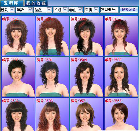 第二步:选发: 根据您的头发实际情况选择您喜欢的发型 ,不录入条件可检索出全部发型图片。