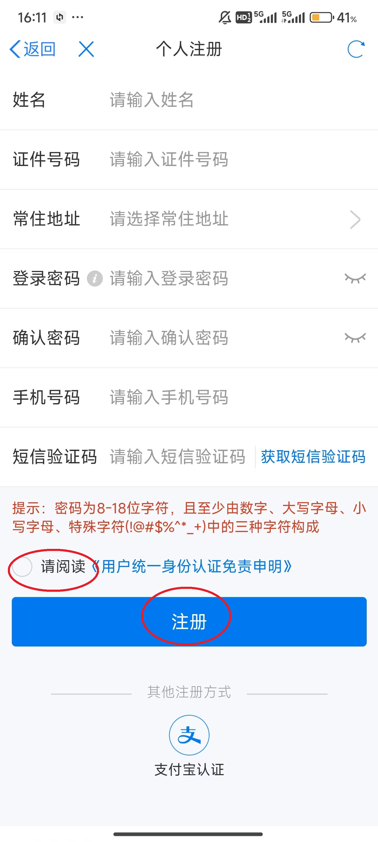 4、填入相关信息,随后勾选屏幕下方的“请阅读...”,最后点击屏幕下方的“注册”。