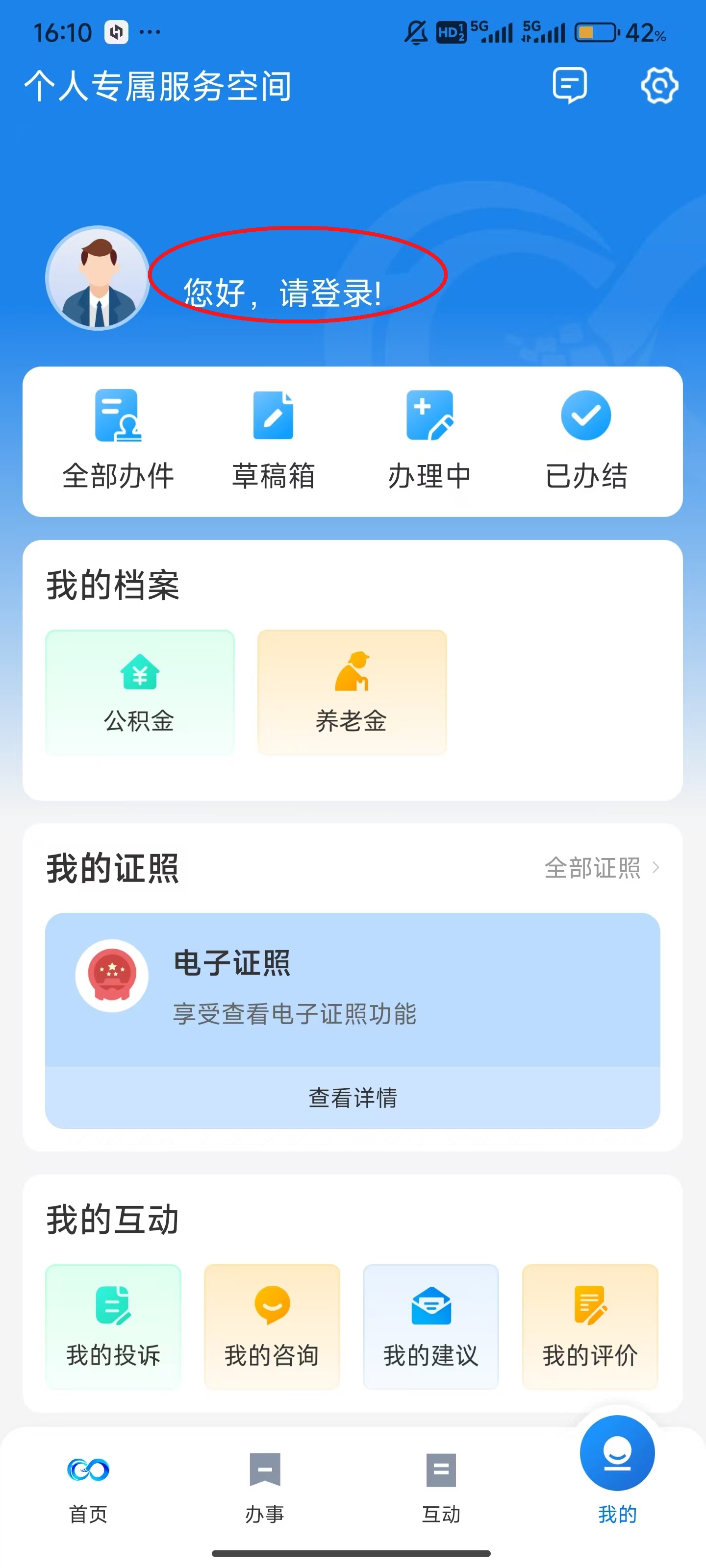 2、点击屏幕上方的“请登录”。
