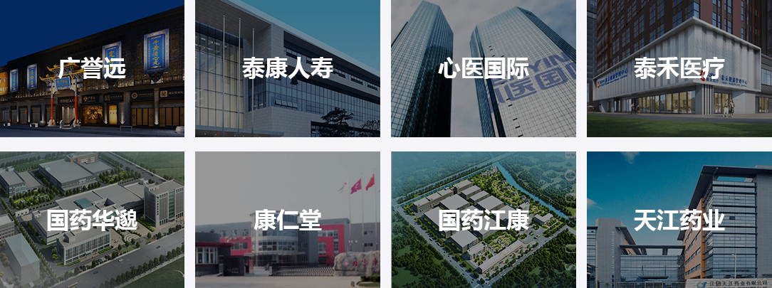 泰康人寿、心医国际、泰禾医疗、广誉远、康仁堂、天江药业、国药江康、国药华邈。