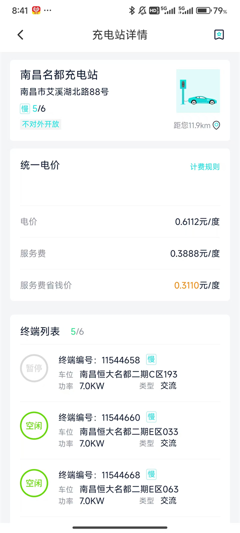 7、地图上无法查询充电桩的信息,建议返回主页面,随后点击在地图上看见的充电桩来查看相关信息。