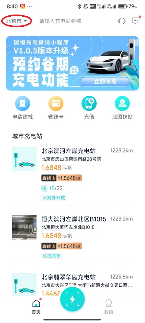 1、首先,在左上角选择自己需要充电的城市。