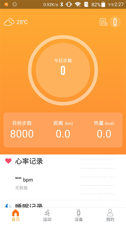 7、点击左下角,回到首页即可看到实时运动状态,点击左上角还可查看更详细天气预告。