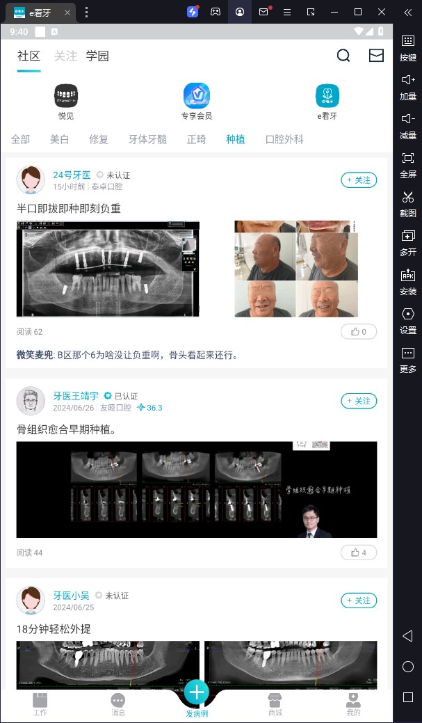 e看牙电脑版是借助安卓模拟器而运行的一款为用户提供健康医疗的服务软件,作为国内领先的口腔+互联网SaaS服务提供商,领健信息致力于以信息技术改造口腔医疗行业,通过连接医院、诊所、医生、患者、数据、第三方服务及供应链。医生可以进行日程管理,协作办公,预约管理,诊后随访,患者管理等功能,并且还能为患者提供电子病历、提高办公效率,此外,软件建立完善的信息系统安全防护体系,能随时导出数据,不用担心数据丢失。 并且移动端数据与PC端诊所云管理系统实时同步,e看牙平台还会通过多种渠道为诊所输送客户,真正做到开源节流。