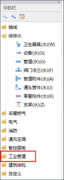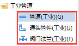 在工业管道模块下新增构件类型:管道(工业)、通头管件(工业)、阀门法兰(工业);