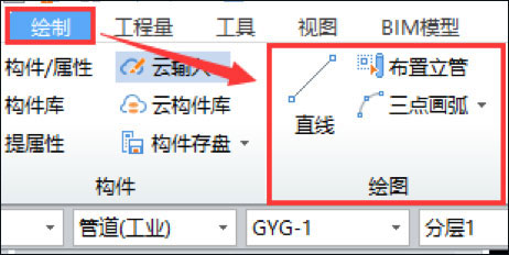可以通过直线、布置立管和三点画弧功能绘制管道;