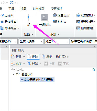 利用【点绘制】功能,直接将要识别的构件点在图上相应位置即可;