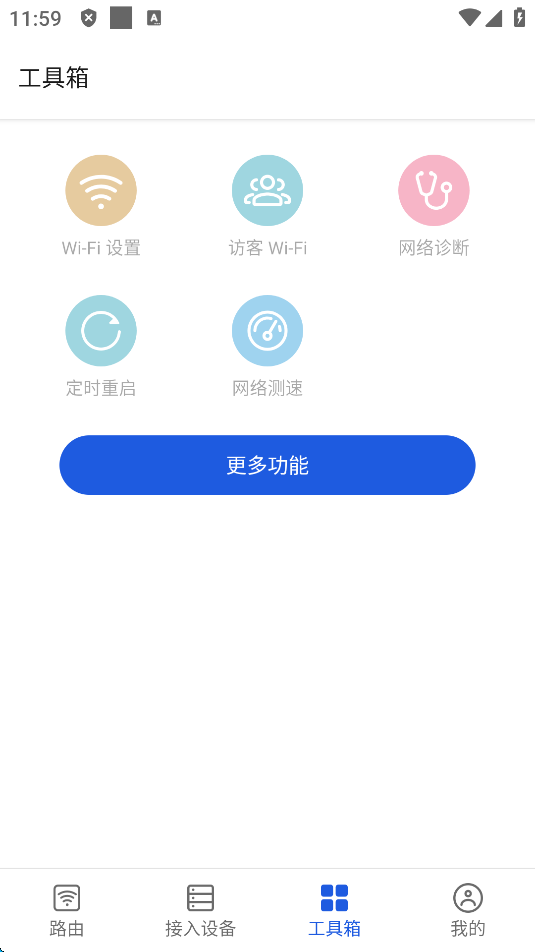4、还可以点击屏幕下方的“工具箱”,可以查看连接WiFi的访客以及进行网络测试等等功能。