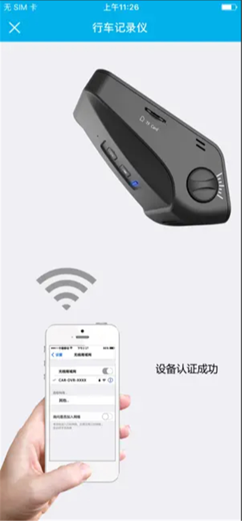 1、(记录仪连接电源,显示灯亮即可)打开手机无线局域网(Wi-Fi)连接设备:CAR-DVR-XXXX。